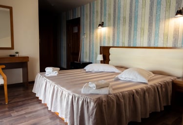 Fiecare cameră este gândită pentru a oferi oaspeților confortul de care au nevoie pentru o odihnă deplină. Spațioase și luminoase, camerele noastre sunt dotate cu facilități moderne pentru a asigura oaspeților o experiență memorabilă.