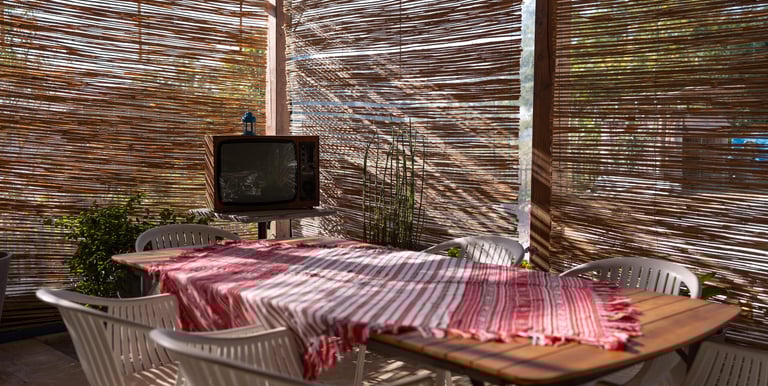 Terasa pensiunii oferă oaspeților un refugiu de liniște, unde aerul proaspăt al Deltei și atmosfera calmantă creează un cadru ideal pentru a savura o cafea de dimineață sau pentru a petrece momente de relaxare pe parcursul întregii zile.